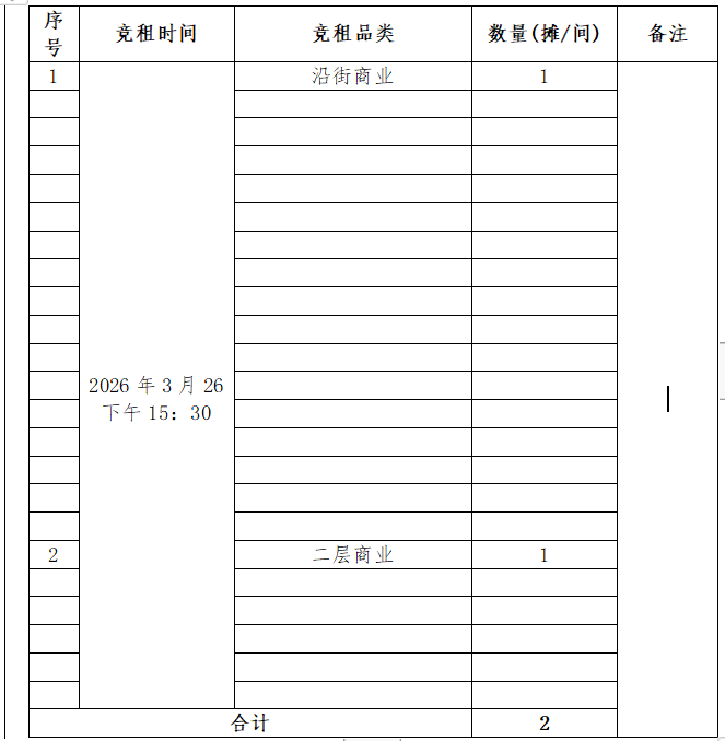 1.本次報(bào)名競(jìng)租沿街商業(yè)、二層商業(yè),保證金為人民幣壹萬(wàn)元整(¥10,000.00),本次報(bào)名競(jìng)租以擬參與競(jìng)租的標(biāo)的物數(shù)量為基數(shù)繳交競(jìng)租保證金,未足額繳交競(jìng)租保證金的不得參與競(jìng)租。